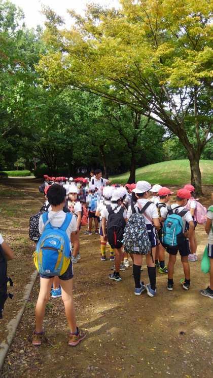 雨上がりということもあり、公園は空いていて、子どもたちはのびのびと過ごすことができました。青空も顔を見せてくれましたが、そろそろ学校へと戻ることにします。