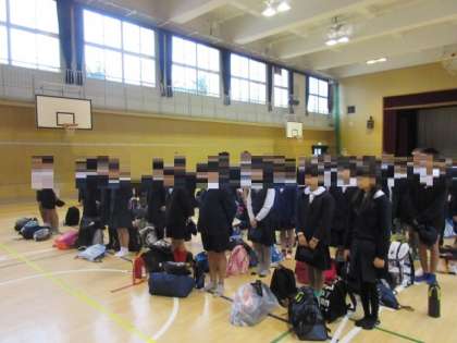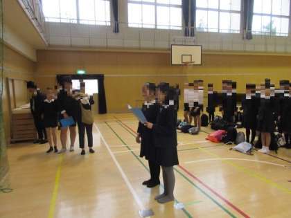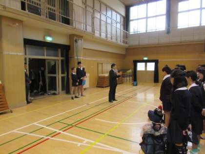 あいにくの雨でしたので、出発式は講堂で行われました。