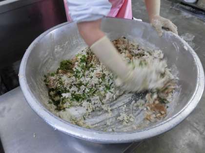 加えてまぜます。まるくまとめて、油であげます。
