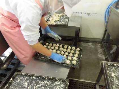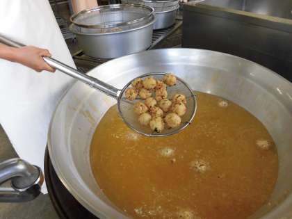 子どもたちに大人気たこボールは、1人1個ずつで、給食調理員さん手作りの揚げ物です。