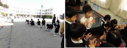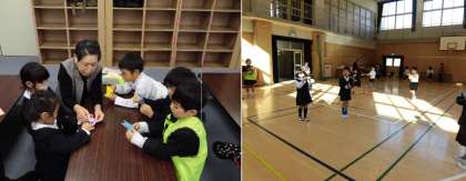 「お手玉」「あやとり」「おり紙」「かわらあそび」「紙ふうせん」「めんこ」「羽根つき」「竹とんぼ」を少しずつですが体験しました。子どもたちにとっては、珍しく新しい遊びです。とても楽しそうに遊んでいる姿が印象的でした。