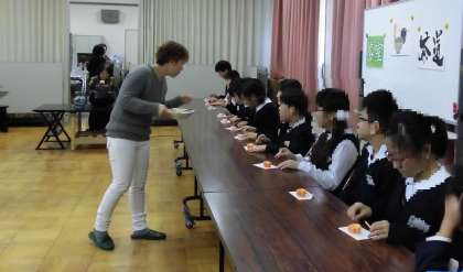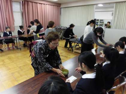 「更生保護女性会」の方々に来ていただき、茶道の作法を教えていただきました。