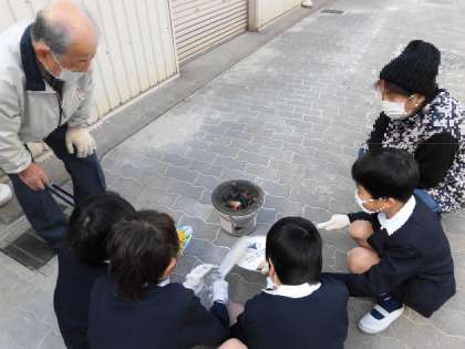 本日、3年生は地域の方にお手伝いいただき、七輪体験をしました。