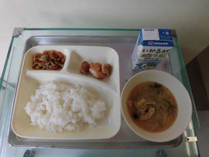 鶏肉のしょうゆバター焼き・みそ汁・きんぴらごぼう・ご飯・牛乳です。