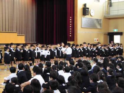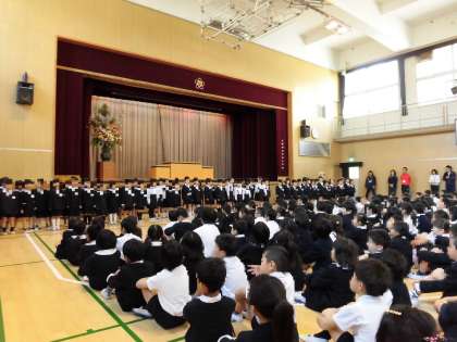 片江小学校の児童全員が講堂に集まるのは、今日が初めてです。