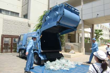 家具はつぶして運びますが、資源ごみは分別がしやすいようにつぶさないで回収します。ゴミの種類によって回収方法もいろいろあるようです。