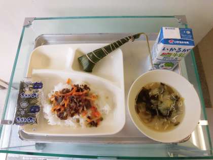 牛肉のちらしずし・すまし汁・ちまき・牛乳です。