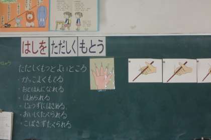 1年生は「おはしの正しい持ち方について」を勉強しました。