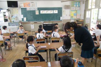 小さな手の1年生にはまだまだ難しいようですが、子どもたちは教えていただきながら、一所懸命練習していました。