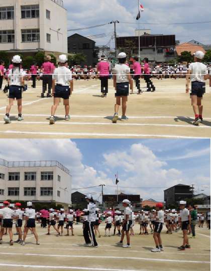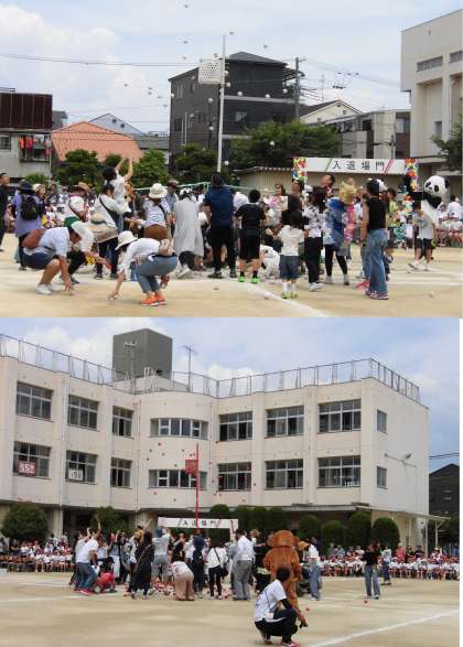 保護者、教職員、かっくん・たえちゃんによる「PTA玉入れ」