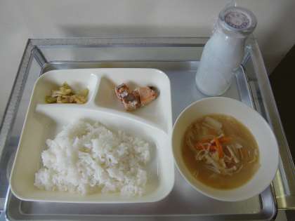 さけの香味焼き・みそ汁・キャベツのごまあえ・ごはん・牛乳