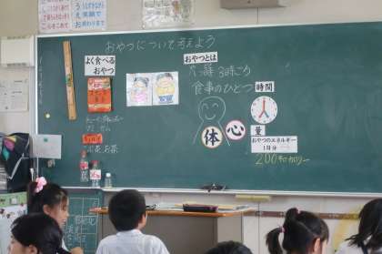 4年生にも「おやつについて考えよう」というテーマで栄養学習が行われました。