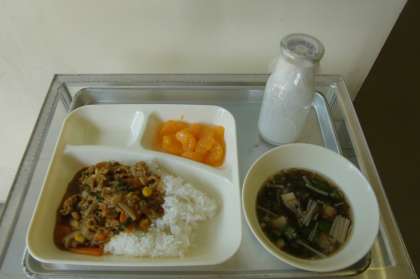 和風カレー丼・もずくとオクラのとろり汁・みかん(缶)・牛乳