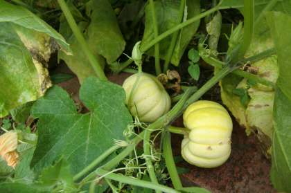 片江小学校の学習園では、各学年が育てている野菜に実が付き始めています。