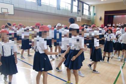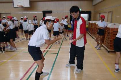 「勝ったら大漁だ!」というゲームです。1人3枚づつのお魚カードを持ち、じゃんけんをして勝つと、相手のカードがもらえます。チーム対抗戦で、どこのチームが1番カードを集めることが出来たのかを競いました。