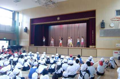 夏祭りが行われました。オープニングセレモニーではダンスクラブの演技が披露されました。今年のめあては「みんなが楽しめて最高の思い出に残る夏祭り」です。最高の夏祭りがスタートです。