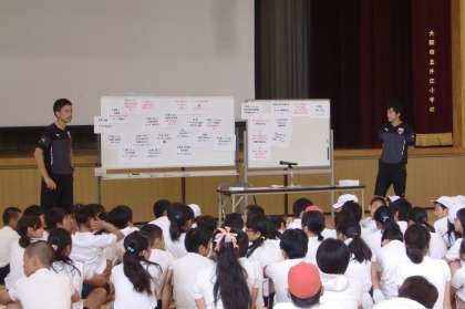 本日、フットサルチーム・SHRIKER OSAKAの方に来ていただき、6年生に「夢授業」をしていただきました。