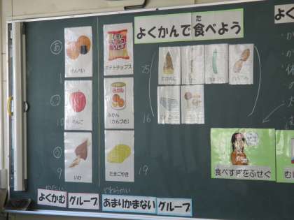 子どもたちの多くは「ポテトチップス」「みかん(かんづめ)」「たまごやき」の方をよく食べていると答えていました。