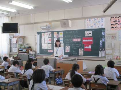 本日2年生で、東成区栄養教育推進事業による栄養学習が行われました。今日の学習のめあては、「よくかんで食べよう」でした。