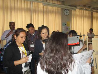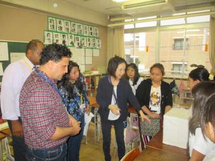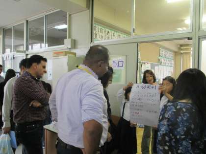 写真は、11日(木)のJICA交流会で海外からきたお客さんにお店を楽しんでもらった時の様子です。覚えるのも、おばけが出題するなぞなぞも難しそうでした。