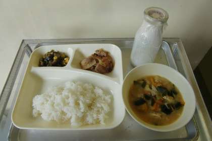 鶏肉の甘辛焼き・みそ汁・なすのそぼろいため・ごはん・牛乳