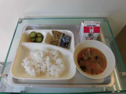お好み焼き・豚汁・きゅうりの梅風味・ご飯・牛乳です。