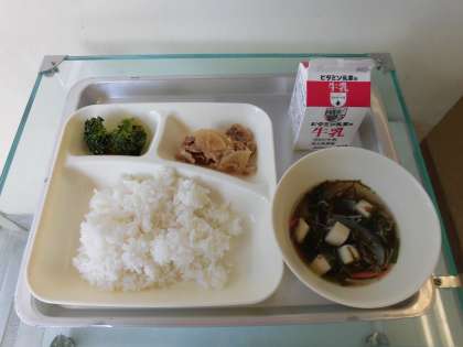 豚肉のコチジャンいため・もずくスープ・ブロッコリーのナムル風あえもの・ご飯・牛乳です。