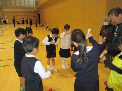 1年生が昔遊びを体験しました。