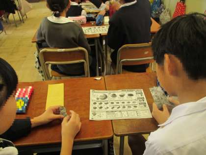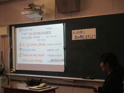 最後は、二人組でお客と店員になって、実際にメニューとお金を使ってロールプレイングを行い、自分の欲しいものを買ったり店員になったりしました。気分は、もう海外。今日の授業のおかげで、外国へ行った時もハンバーガーを食べることができますね。