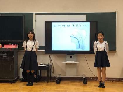 今年のテーマは、今年度片江小学校で取り組んでいる「あいうべ体操」についてでした。