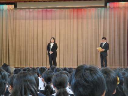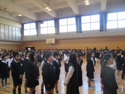 校長先生からは、「イノシシ年は『勇気と冒険』の年といわれています。今年一年、色々なことに勇気をもってがんばりましょう。また、3学期はまとめの学期です。一年間のまとめをして、次の学年の準備もしましょう」とのお話がありました。