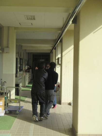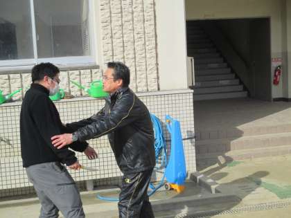 本日、東成警察署生活安全課防犯係の方々の協力で、不審者が西門から侵入したという想定の避難訓練を行いました。
