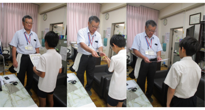 夏休みの自由研究で頑張った児童に賞状が渡されました。
