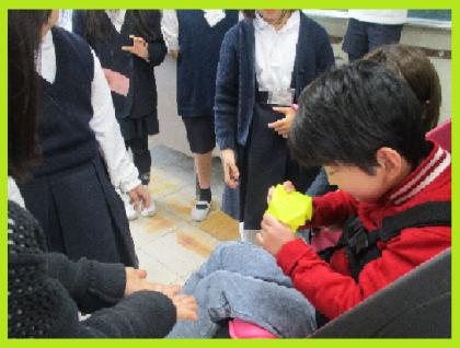 校区にお住まいで支援学校に通っているお友達をお招きし、交流活動をしました。みんなで事前に作っておいた折り紙の風船を使ったゲームを行いました。交流会の終わりに3年生からお友達へ、心を込めて作った折紙の作品をプレゼントしました。今回の交流を通して子どもたちは優しさや思いやりの気持ちを育み、かけがえのない大切な経験をすることが出来ました。
