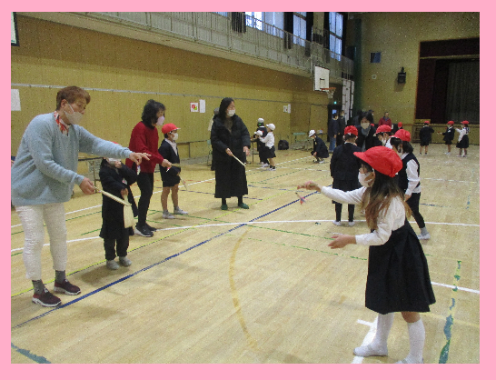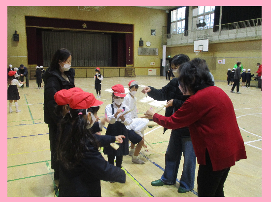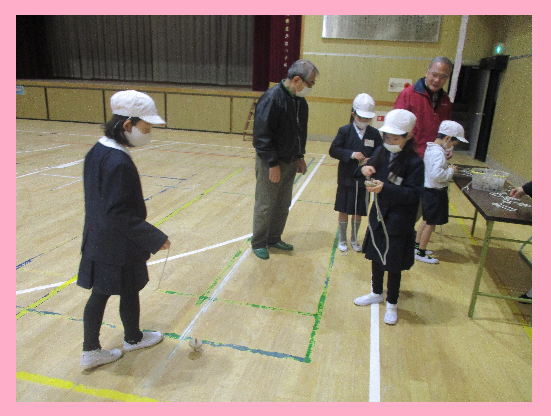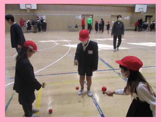 1年生が「昔遊び体験」を行いました。地域のボランティアの方々にお越しいただき、遊びのコツを優しく丁寧に教えていただきました。初めての道具に苦戦する様子も見られましたが、「こうやって持つんだよ」「膝を使うとうまくいくよ」とアドバイスを聞き、少しずつ上達していく子供たち。技が成功したときには、あちこちで大きな歓声が上がっていました。現代のゲームとはまた違う、手先の感覚や体の使い方を学ぶ貴重な時間になりました。ご協力いただいた地域の皆様、温かいご指導を本当にありがとうございました。