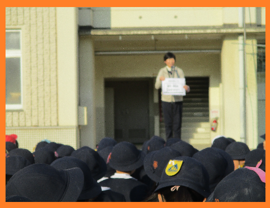 これらは、皆さんの「安全」と「心構え」のためにとても大切な約束です。通学帽は 外から皆さんが小学生だとすぐに分かり、交通安全につながります。また、寒さから頭を守る役割もあります。名札は学校の一員であることの証です。お互いの名前を大切に呼び合えるよう、忘れずに付けましょう。