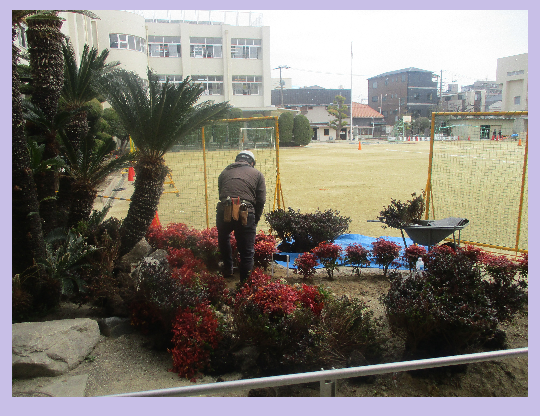 本校では、児童が季節の移ろいを感じられる環境づくりの一環として、学校花壇の整備を行いました。今回はユンボを使用して土を入れ替え、花壇全体をより育ちやすい環境へと整えました。子どもたちが楽しみにしている新しい草花を植え付け、花壇は明るく華やかな雰囲気に生まれ変わりました。これから季節ごとに花が咲き、児童の学びや心の安らぎにつながることを願っています。今後も学校全体で環境整備に取り組んでいきます。