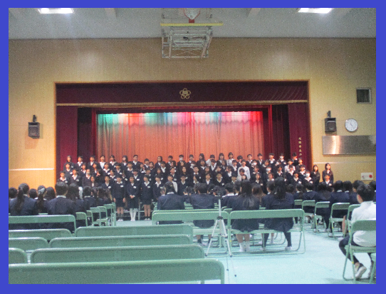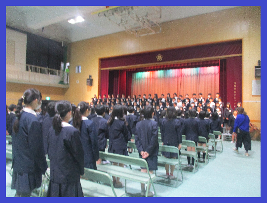 式の最後には、両学年で合唱を行いました。体育館いっぱいに響き渡る歌声は、これまでの感謝と、これから始まる新しい一歩への決意を表しているようでした。5年生の表情も、どこか頼もしく見えたひとときでした。
