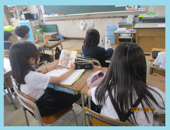 朝の静かな教室。チャイムと同時に、子供たちの読書タイムが始まります。当校では、子供たちが本に親しみ、豊かな心を育む時間として「読書タイム」を大切にしています。子供たちはそれぞれ、図書室や家庭から持ってきた自分のお気に入りの一冊を手に取ります。物語の世界へ深く没頭する子、図鑑の不思議に目を輝かせる子など、一人ひとりが自分のペースで、本との特別な時間を楽しんでいます。 本を広げ、友達と一緒に物語を楽しむ姿もよく見られます。「このページ、面白いね!」「次はどうなるんだろう?」と感想を語り合ったり、同じ絵本を仲良く隣で眺めたり。本を通じて自然とコミュニケーションが生まれ、友情の輪も広がっています。