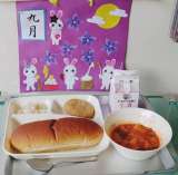 〜献立〜 カレーマカロニグラタン・トマトスープ・みかん(缶) 「カレーマカロ...