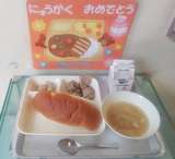 こどもの日献立でちまきが出ました。 1年生が小さな手で、ちまきをむいて食べま...
