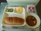 本日の給食は ビーフシチュー・きゅうりのバジル風味サラダ・パインアップル(缶...