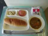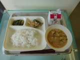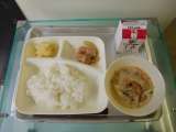 本日の給食は 黒糖パン・ミートボールと野菜のカレー煮・ツナとキャベツのソ...