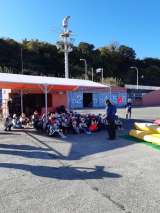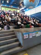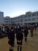 学校まで帰ってきました。 帰校式です。 (15時45分頃)