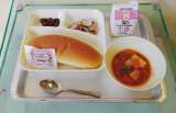 〜献立〜 コッペパン・豚肉のガーリック焼き・ケチャップ煮・うずら豆のグラッセ・い...