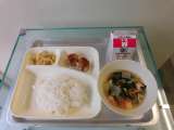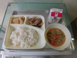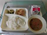 本日の給食は 鶏肉の甘辛焼き・みそ汁・きくなとはくさいのごまあえ・ご飯・牛乳...