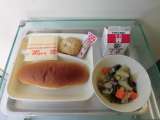 本日の給食は 豚肉のケチャップソテー・はくさいのスープ・焼きかぼちゃ・ライ麦パ...