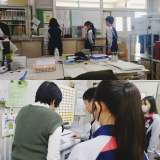 相生中学校の生徒3人が片江小学校に2日間職場体験に来ました。 朝は職員室の放...