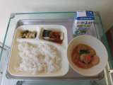 本日の給食は チキンカレーライス・キャベツときゅうりのサラダ・プチトマト・牛乳で...
