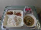 本日の給食は 鶏肉のてり焼き・さつまいものみそ汁・きんぴらごぼう・ご飯・牛乳です...